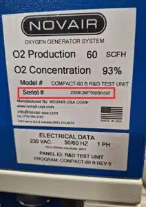 - The Model of the unit you are inquiring about, (for instance NOVAIR MOGScfp-20, OGSI OG-100, NOVAIR COMPACT-20B, etc.)